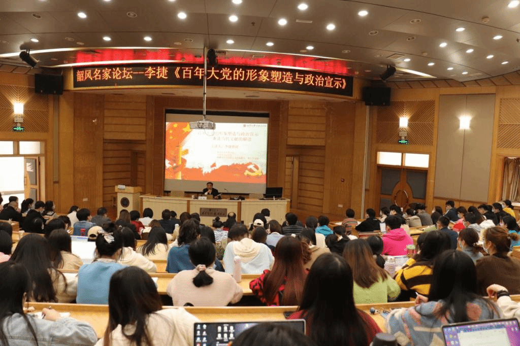 11月2日下午15时,韶风名家论坛&领航讲堂在图书馆学术报告厅成功举办。本次活动有幸邀请到求是杂志社原社长、中国史学会会长、中央“马工程”咨询委员会委员、国家教材委员会委员、湘潭大学日韩欧美中文教授、博士生导师李捷教授,给大家带来主题为《百年大党的形象塑造与政治宣示——兼谈当代文献的解读》的分享。此次论坛由我院院长、博士生导师颜佳华教授主持,近300名师生共同聆听。