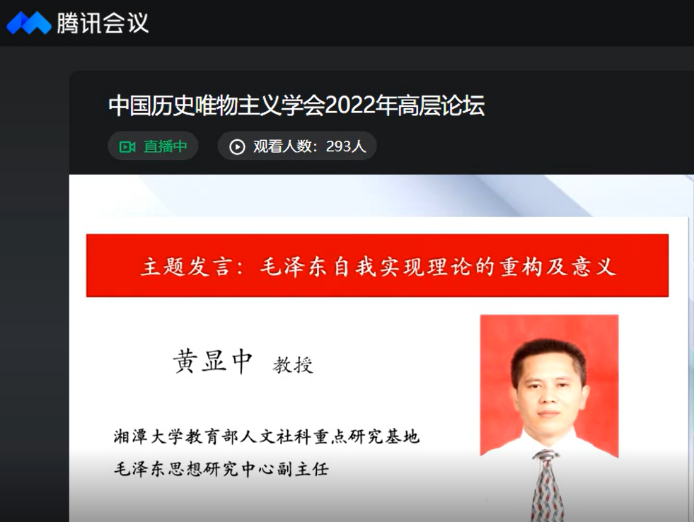 应中国历史唯物主义学会、中国社会科学院国家文化安全与意识形态建设研究中心、东北大学邀请,我院黄显中教授、2021级博士研究生唐立于9月24日线上参加在东北大学举行的“中国历史唯物主义学会2022年高层论坛”会议。