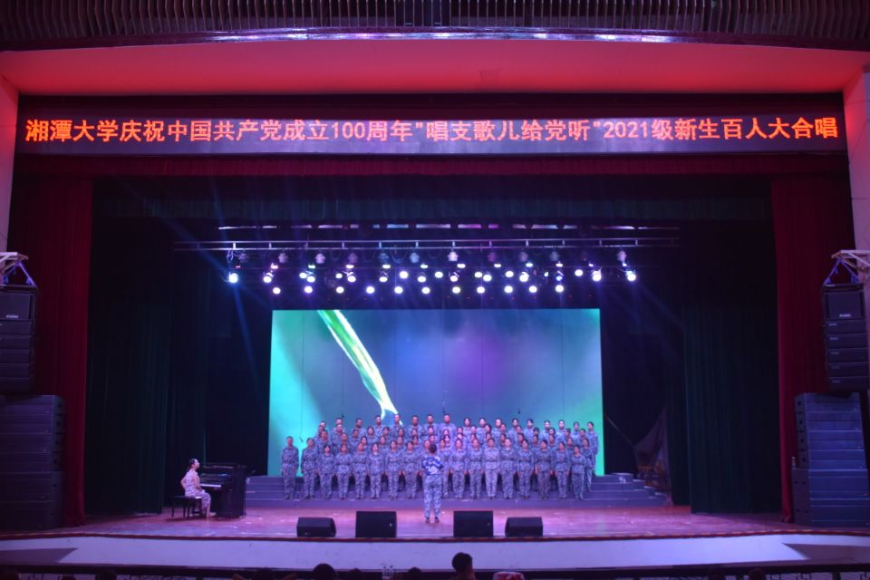 2021年10月5日晚19:00,湘潭大学庆祝中国共产党成立100周年“唱支红歌给党听”——百人大合唱歌咏比赛如期举行,日韩欧美中文全体新生参加了本次比赛,荣获二等奖的好成绩。