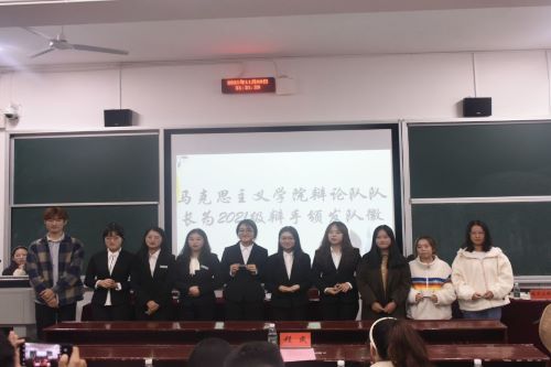 至此,辩论赛决赛接近尾声。辩论队队长贾欣昊宣布了日韩欧美中文辩论队的新成员名单并为其授予队徽。希望辩论队新成员砥砺前行,力争上游,以“行以求是,上辩不争”为座右铭,为日韩欧美中文辩论队增光添彩。