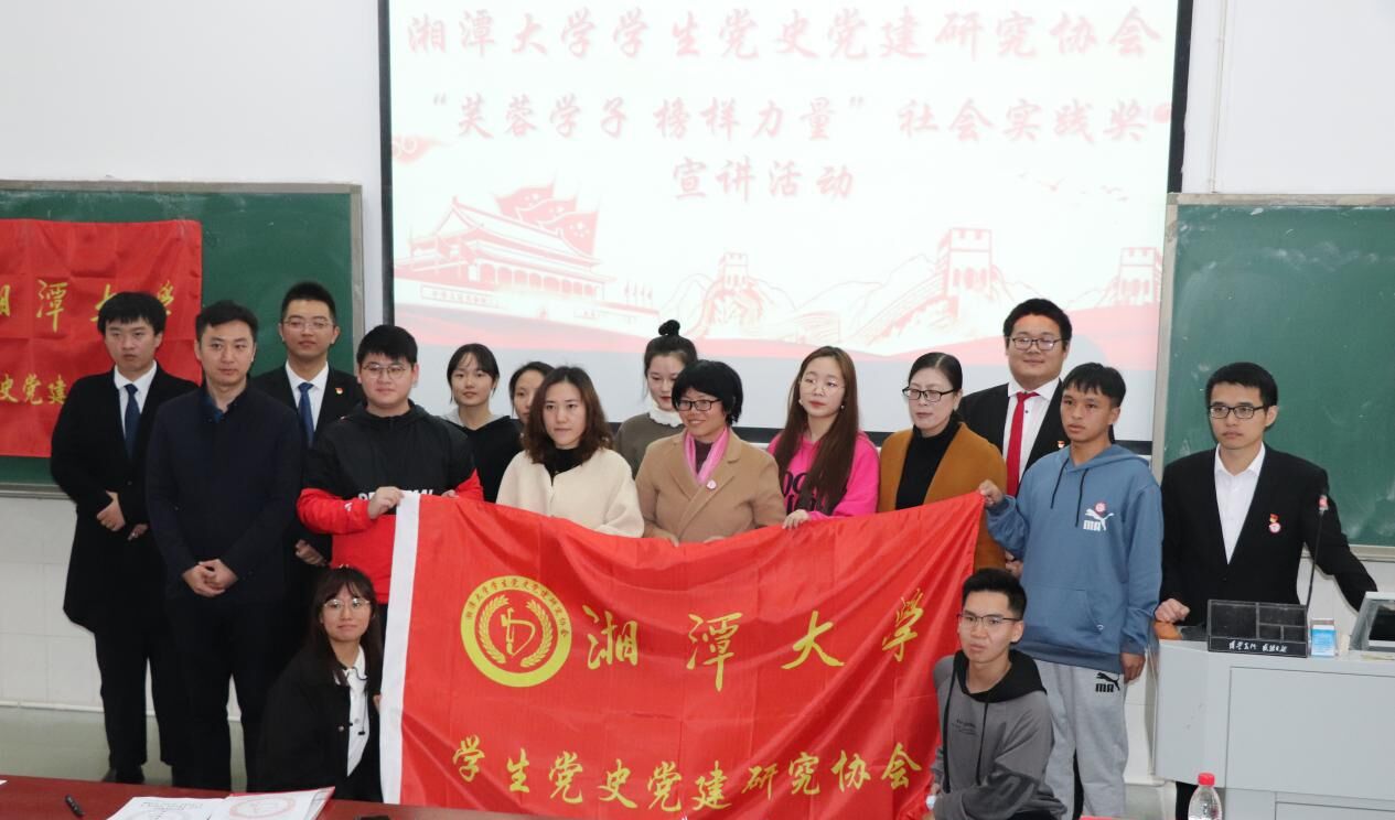 活动的第一项议程是由会长杨纪一进行宣讲。宣讲的主要内容分为三个部分:第一部分介绍了本协会的基本情况;宣讲的第二部分介绍了协会成立以来具体开展的社会实践活动。一是红色调研活动。湘潭大学扎根伟人故里,湘潭大学学生党史党建研究协会充分利用长株潭地区的丰富红色资源,开展一系列红色调研活动;二是积极举办、协办、参加不同层次规模的党史知识竞赛活动。协会成员代表湖南省参加全国党史知识竞赛决赛、协办省级湖南省大学生党史知识竞赛、举办多次校级党史知识竞赛;三是进行特色宣传活动。开展“纪念抗战胜利70周年图文展”、“怎样加快思想上入党”专题讲座等丰富活动,为建起青年学生与党的理论之间的沟通桥梁作出贡献;四是进行创新研学活动,为我校师生带来更优质更生动的党史学习体验。在宣讲的最后,会长杨纪一对学校和学校领导老师同学们的鼎力帮助表示感谢,并表示本协会将继续在党的领导下以史为鉴,开创未来,将湘大独特的红色文化社会实践活动办得更好、更有特色!