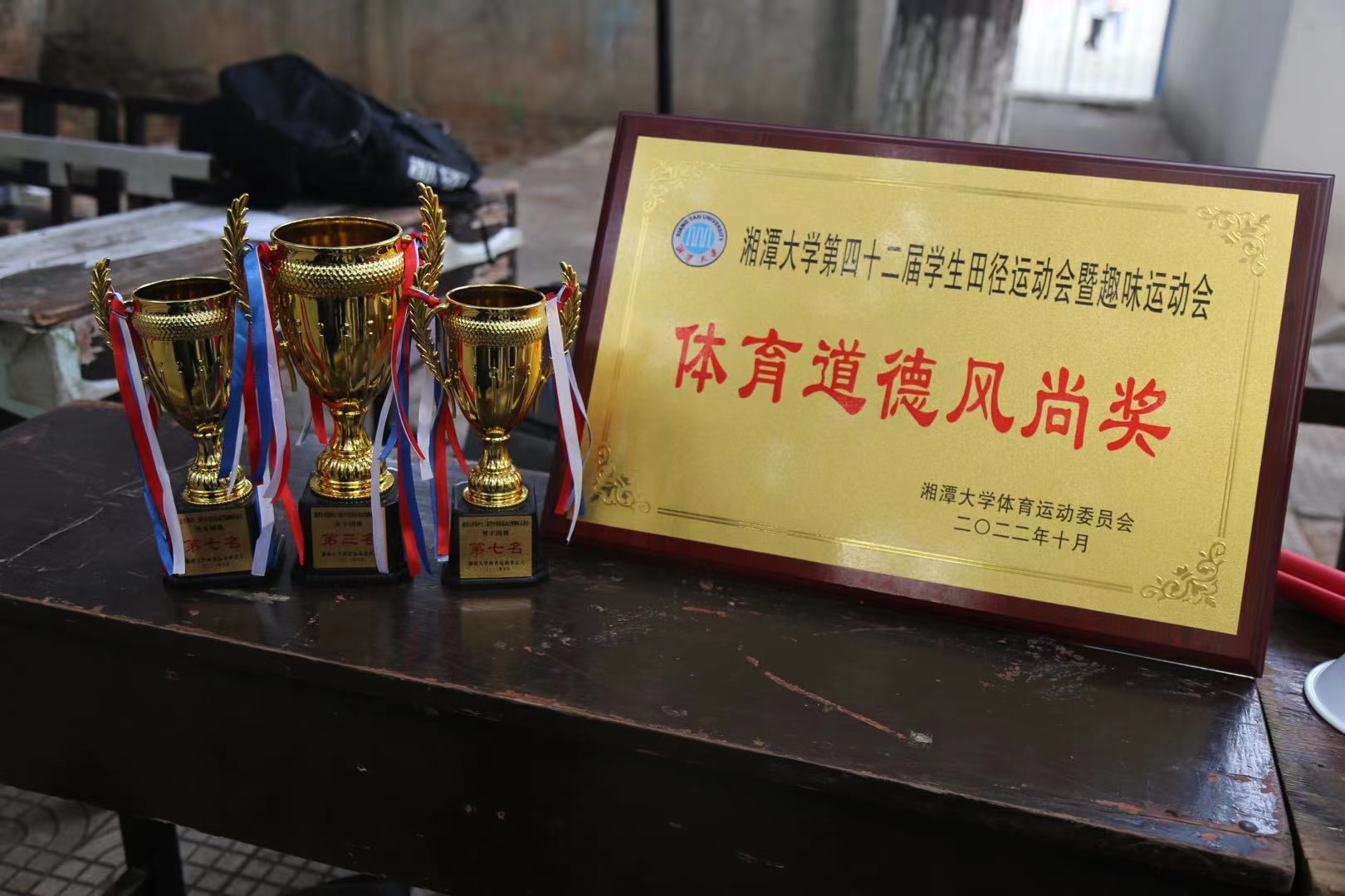 2022年10月29日至30日,湘潭大学第四十二届学生田径运动会暨趣味运动会在第二田径场举行。我院在本次学生田径运动会中收获颇丰:获得了女子团体第三名、男子团体第七名、混合团体第七名、体育道德风尚奖等四项荣誉,包揽全部奖项,创下我院历史之最。