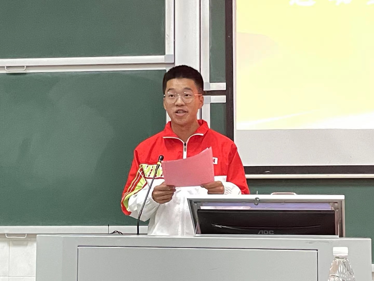 接着,运动员代表易卿鋆用风趣幽默的语言和大家分享了他在运动会期间的感受。他从热闹的观众席,讲到辛勤付出的工作人员和二田场中的运动健儿们,这展现出我院学子奋勇拼搏的精神风貌。