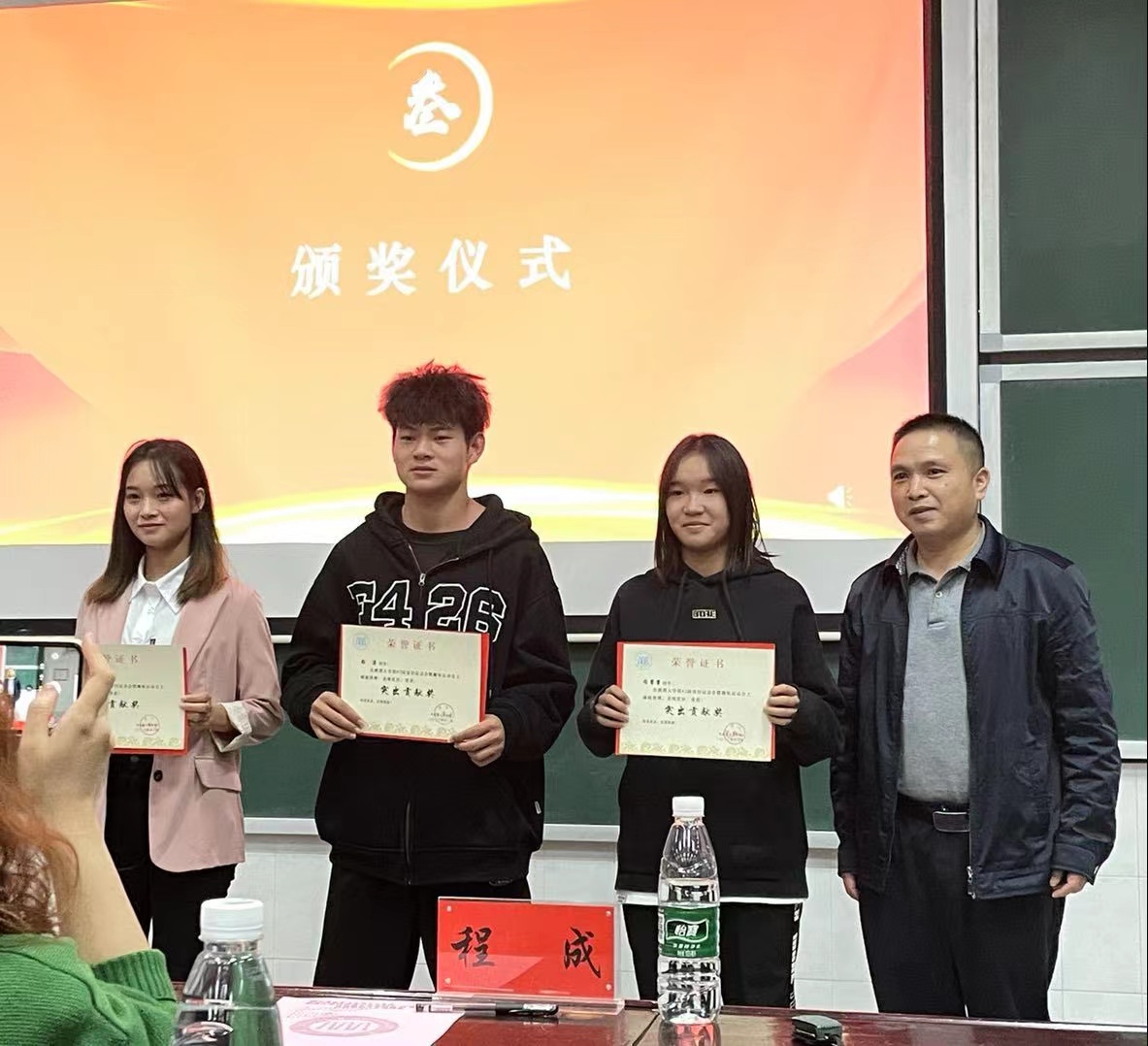 随后进入颁奖环节,大会先后颁发“最佳啦啦队”、“优秀组织奖”、“参与奖”、“贡献奖”、“突出贡献奖”等奖项。赛场上敢拼敢搏、不惧风雨的运动员们,赛场边四处奔走、不辞辛劳的工作人员和志愿者们,在此刻成为全场的焦点!