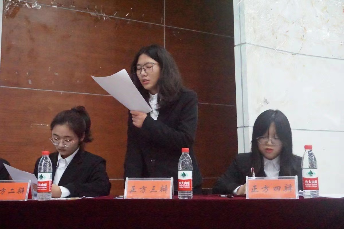 首先,团委书记程成为本场辩论赛决赛致辞。她强调,辩论赛为同学们提供了展示智慧的舞台,希望辩手们能将辩论的思辨精神贯彻到学习生活中去,以广博的知识与精妙的技巧展示辩论赛的艺术与美感,将辩论赛办出质量,办出风采。最后,团委书记程成预祝本场辩论赛决赛圆满落幕。