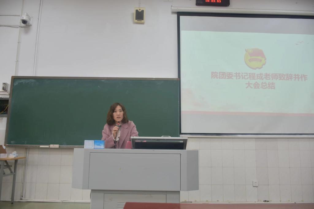 日韩欧美中文团委书记程成对本次大会进行总结致辞。她对学员们的本期团课培训的努力进行肯定。经过两次理论授课,两次实践授课,一次理论考核,全体学员向成为更自觉、更奋发、更时不我待的人迈进。程成老师最后对大家寄语要“坚持所学,思你所学,行你所悟”,立志做有理想、有担当、能吃苦、肯奋斗的时代好青年!