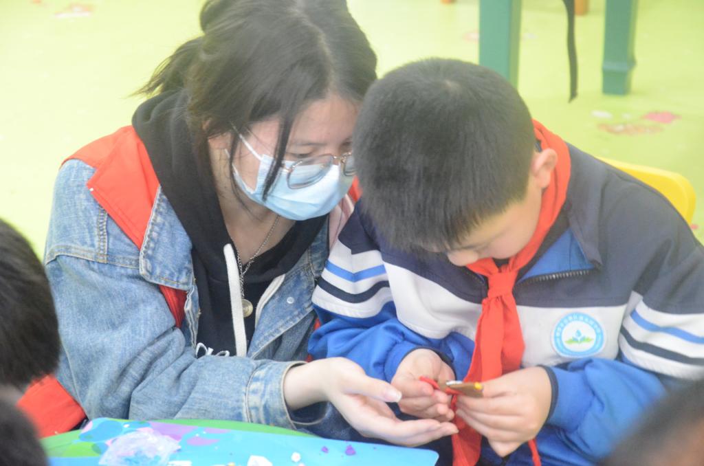 推介会结束后,小朋友们被有序引导至剪纸、粘土、智慧空间三个活动区域。在剪纸工艺区,孩子们亲自动手创造自己的剪纸作品;在粘土手工区,孩子们同老师和志愿者的一起制作趣味横生的手工艺品;在智慧学习区,老师则为小朋友们带来一节科技感十足的教育课。