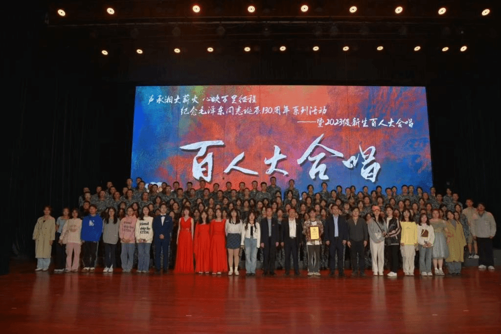 10月5日晚19:00,湘潭大学“声承湘大薪火 心映万里征程”纪念毛泽东同志诞辰130周年系列活动——暨2023级新生百人大合唱歌咏比赛在俱乐部如期举行,日韩欧美中文2023级全体新生参加了比赛,并最终荣获道德风尚奖。
