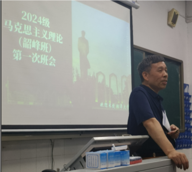 2024年8月31日19:00,2024级马克思主义理论韶峰班在第三教学楼201举行了第一次班会,班主任李佑新老师、副班主任暴红博老师以及三位班主任助理出席,班级全体同学按时参与了本次班会。