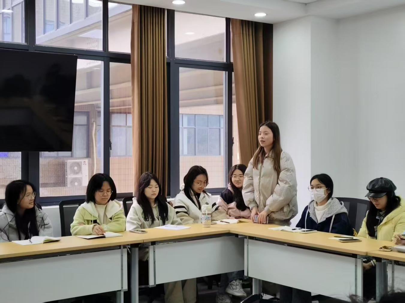 (图为培训成员吴梦茜分享体会)