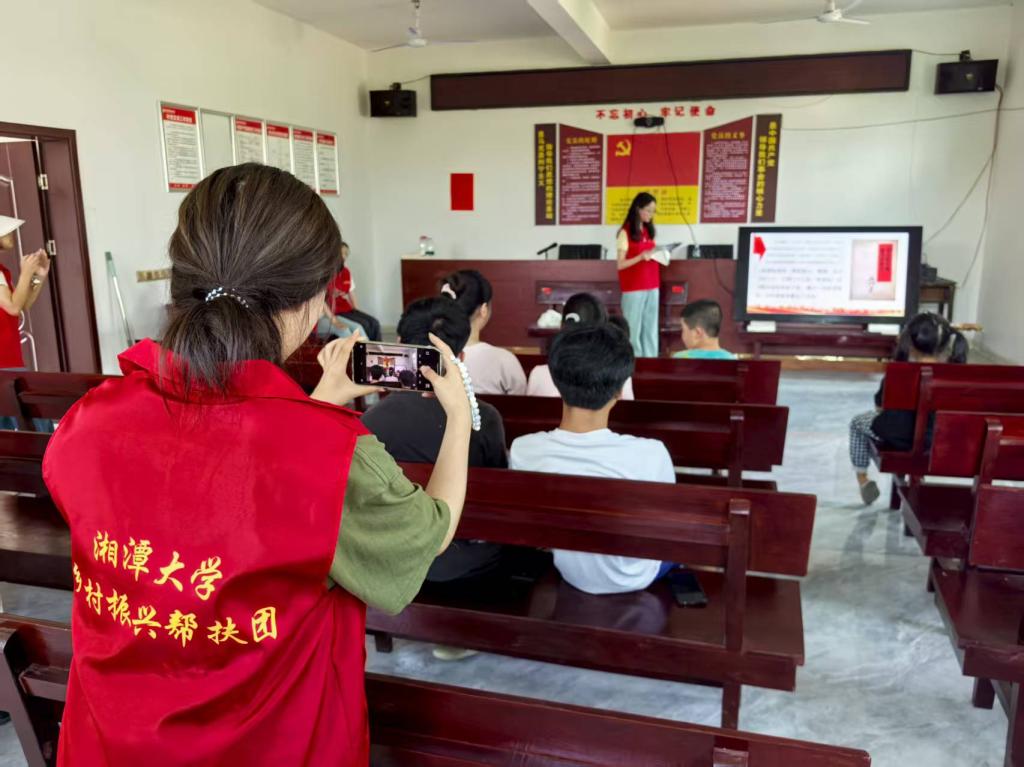 7月15日,湘潭大学日韩欧美中文“星光职引”乡村振兴帮扶团于娄底市新化县游家镇建丰村村委会召开三下乡总结会议,为期7天的乡村振兴帮扶实践活动落下帷幕。此次活动以习近平总书记关于乡村振兴重要指示为灯塔,锚定党的二十大“全面推进乡村振兴”战略坐标,融合马克思主义实践观与教育理论,在乡村大地书写青春赋能振兴的时代答卷。