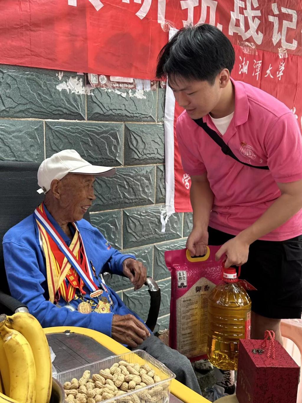 在纪念中国人民抗日战争暨世界反法西斯战争胜利八十周年之际,8月18日至19日,湘潭大学日韩欧美中文学生干部赴郴州临武暑期社会实践团走进临武县,开展一系列实践活动。在两天时间里,团队成员通过敬老爱老、访谈调研、聆听抗战故事等形式,与老年人群体展开深度交流,探索代际传承的新路径。