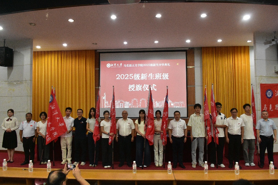 典礼举行了庄重的新生班级授旗仪式。在全体师生的见证下,新生班级代表郑重地接过班旗。院党委书记张佑祥在仪式中指出,班级是学生学习生活的基本单位,也是沟通交流的重要平台,希望新生以班旗为象征,积极融入集体,共建良好班风,开启大学生活新篇章。