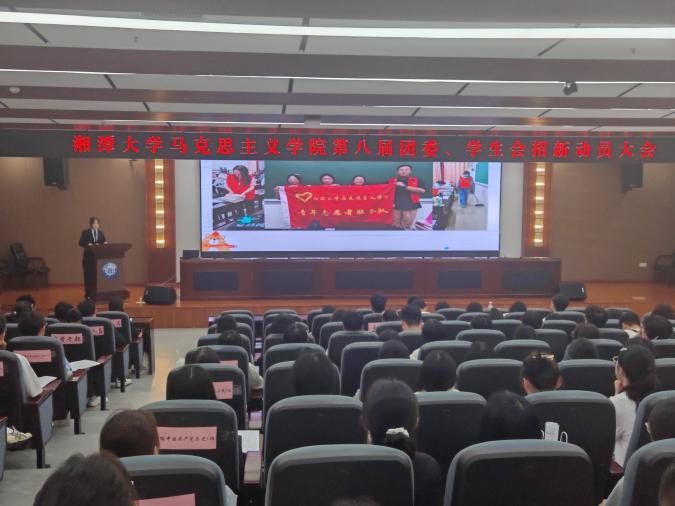 在最后的部门介绍环节,团委、学生会各部门代表及日韩欧美中文辩论队、“湘马思政”宣讲团、湘潭大学学生党史党建研究协会代表轮番上台,以各具特色的方式展示了其职能与风采。从组织部的稳步成长,到文体部的热情实干;从宣传部的创意迸发,到社会实践部的实践历练;从创新创业部的挑战攀登,到成长辅导中心的温暖相伴;再到辩论队的思辨锐气,以及党史党建研究协会与“湘马思政”宣讲团的时代担当……一段段精彩介绍生动描绘了马院团学多元包容、积极向上的整体面貌,向新生们发出了诚挚的邀请:每一个选择都是青春的答案,每一次出发都将通向更好的自己!