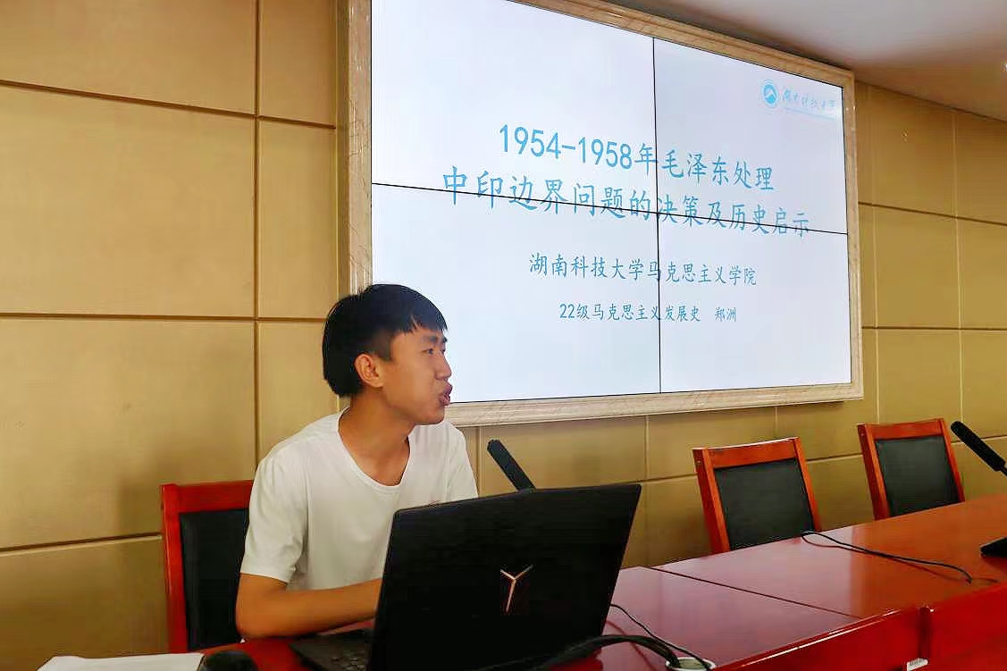郑洲以《1954-1958年毛泽东处理中印边界问题的决策及历史启示》为题,分享了毛泽东关于“中间地带”的国际战略思想,介绍了毛泽东在签订《1954年中印协定》中的博弈,以及为了顾全大局对中印边界纠纷的低调处理。以毛泽东同志为核心的党的第一代中央领导集体在解决中印边界问题上进行了许多有益的探索,为我国在当今复杂国际环境下妥善处理并最终解决这一问题提供了重要的历史启示。