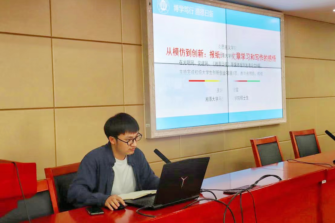 黄家康以《毛泽东关于思想政治教育本质的论述》为题,他指出,思想政治教育的本质在于毛泽东所指出的“争取群众”。思想政治工作本质的实现不仅需要在思想上掌握群众,还要在实践中彻底争取到群众。要通过以情感人、以理服人、以利动人来争取群众。最后,他分享了自己的投稿经验。