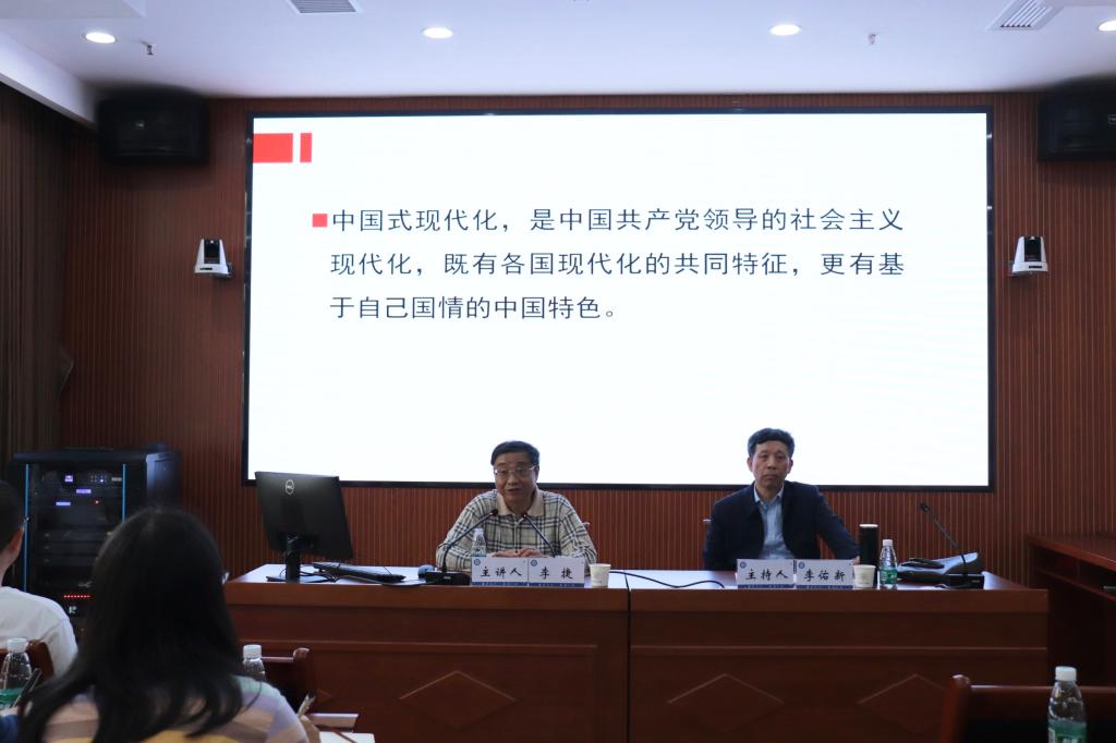 10月15日下午,中国史学会会长、教育部人文社科重点研究基地湘潭大学毛泽东思想研究中心特邀研究员,《求是》杂志社原社长李捷研究员作客“领航讲堂”,作了题为“关于中国式现代化的几点思考”的学术讲座。