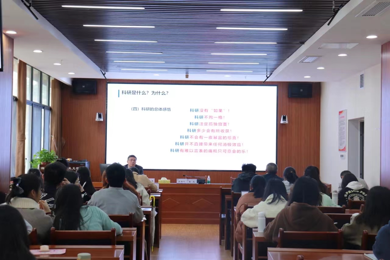 讲座中,赵中源教授对科研是什么,为什么、科研课题申报ABC、论文写作的基本要义三方面进行了详细阐述。