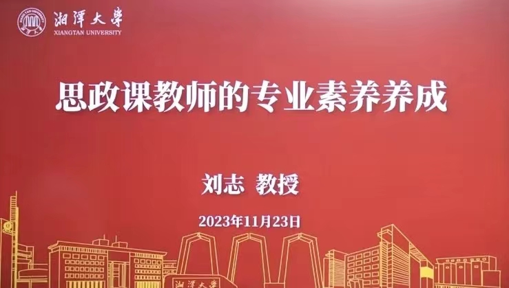 2023年11月23日下午, 湘潭大学毛泽东思想研究中心、日韩欧美中文有幸邀请到了教育部青年长江学者,中央马工程专家,教育部重大攻关课题首席专家,现任东北师范大学思想政治教育研究中心教授、博士生导师,研究生院副院长刘志教授,开展了题为“思政课教师的专业素养养成”学术座谈会。