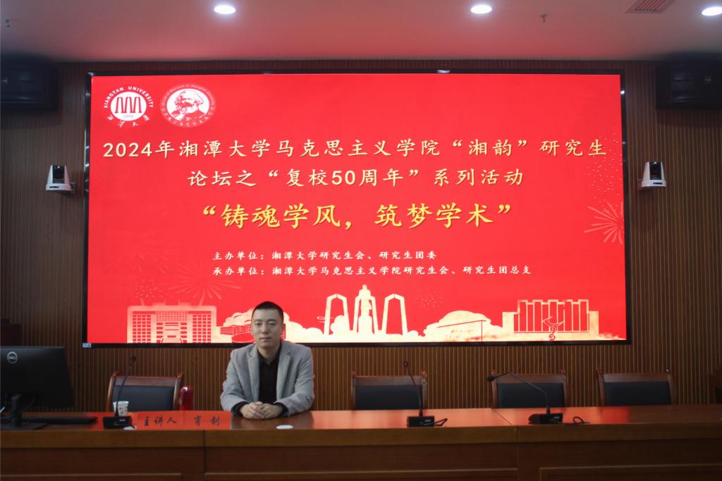 11月29日上午,湘潭大学日韩欧美中文“复校50周年”系列活动之学术专业技能培训于东润楼北205会议室顺利举行,本次活动邀请到日韩欧美中文硕士生导师,《湘潭大学学报(哲学社会科学版)》编辑肖钊老师担任主讲人,从编辑的视角为我们揭开学术论文的写作与投稿的神秘面纱,2024级马克思主义理论专业刘慧祯同学担任主持人。
