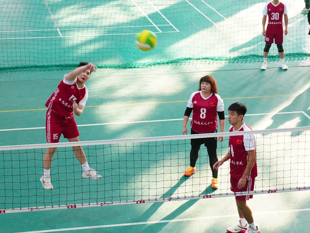 在比赛中,大家本着“友谊第一、比赛第二”的原则,在球场上互相尊重,互相学习。运动员们在场上纷纷拿出自己的绝招,扣球、发球、一传、二传,每个环节都尽力发挥,严谨认真,充分展现了团结和谐的良好风尚和师生文明健康的精神风貌。在比赛时,场下的观众都奋力地加油、呐喊,通过各种方式支持自己学院队伍。比赛在一片和谐欢笑中圆满结束。