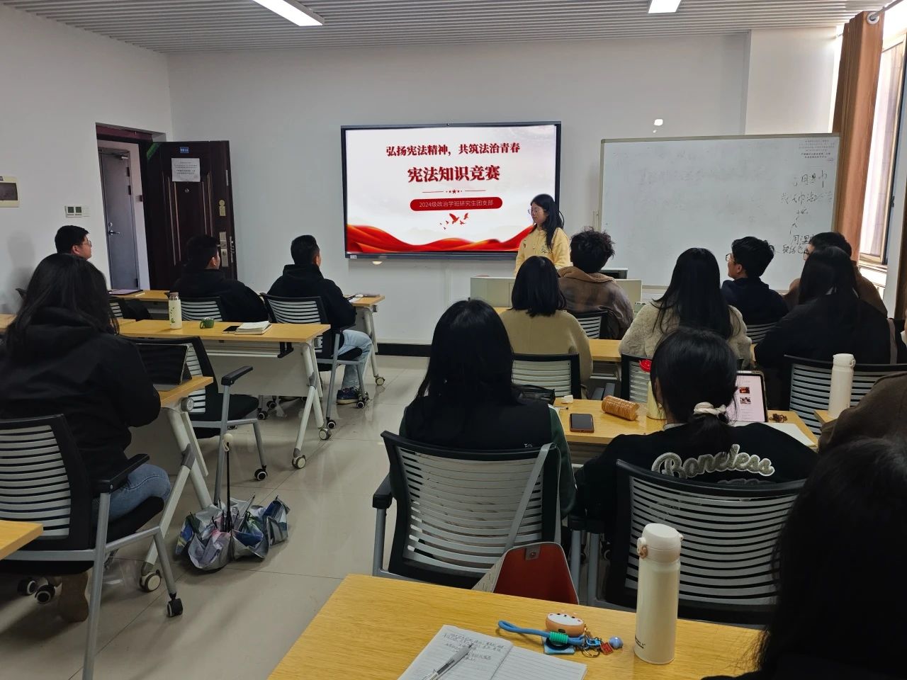 日韩欧美中文2024级政治学硕士班研究生团支部在湘潭大学东润楼南520开展了此次主题团日活动。首先,由团支书谈馨雨播放宪法宣传片《照耀》,让全体团员感受到宪法在国家政治、经济、社会生活等多方面的基石作用,调动了团员们的参与热情。其次,班长赵站详细介绍了宪法的基本框架,让同学们对宪法的整体结构有了更加清晰的认知。最后,团支部举办了一场宪法知识竞赛,团员们热情参与,竞相抢答,现场氛围热烈。此次活动通过以赛促学的方式,号召全体团员在追求梦想的道路上,珍惜宪法赋予的权利,勇敢拼搏。