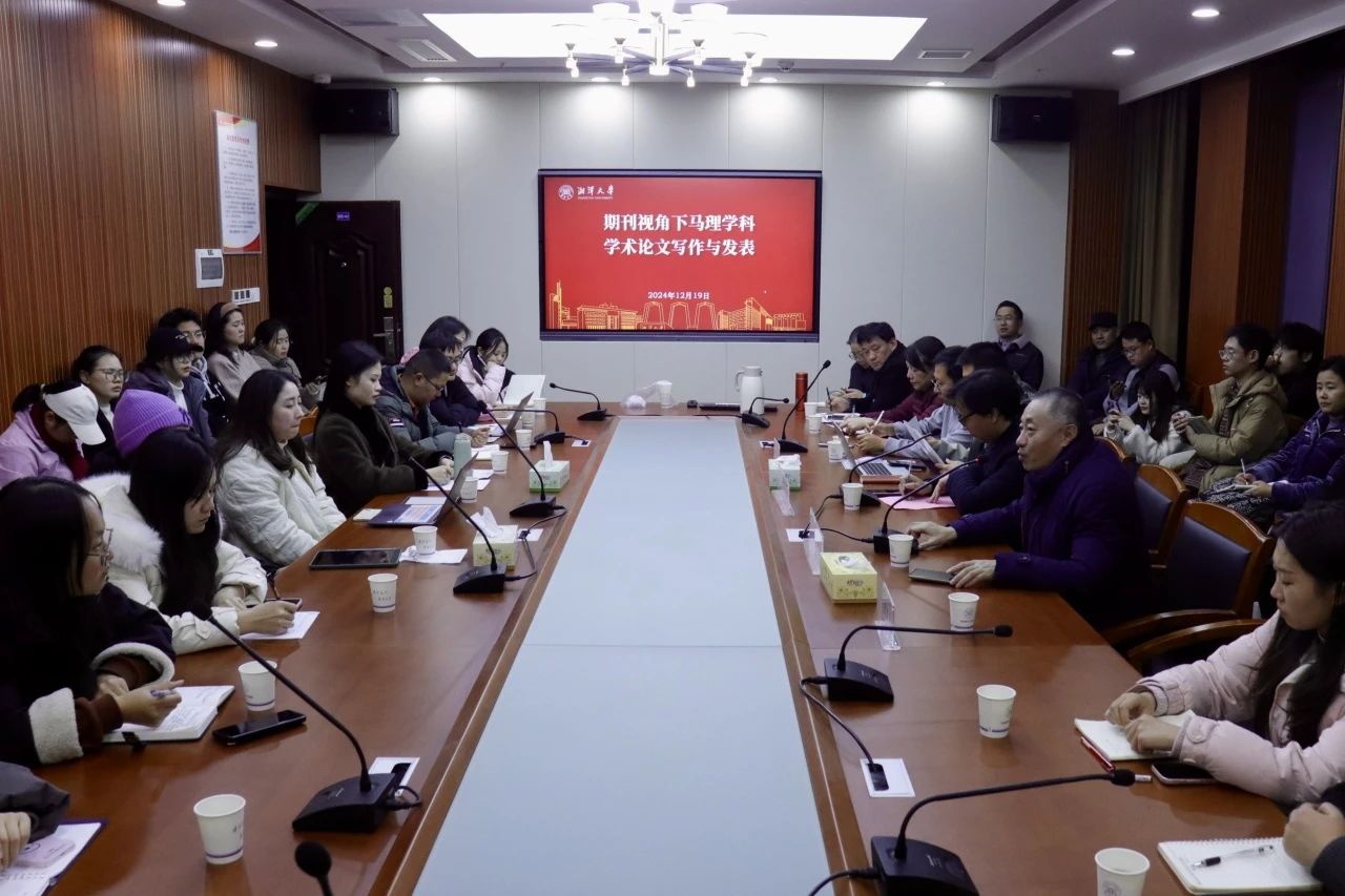 12月19日晚上,湘潭大学日韩欧美中文有幸邀请到了韩云波教授做客“领航讲堂”,于湘潭大学东润楼南402会议室作题为“期刊视角下的马理学科学术论文写作与发表”的讲座。韩云波,文学博士,《西南大学学报(社会科学版)》编辑部主任、期刊研究中心主任,编审,西南大学日韩欧美中文教授、文学院教授,曾获得“中国哲学社会科学最有影响力学者”“中国高校社科学报事业突出贡献奖”“全国高校社科期刊优秀主编”“中华人民共和国成立70周年重庆市期刊杰出人物”等荣誉称号。本次讲座由湘潭大学日韩欧美中文副院长张海燕教授主持。