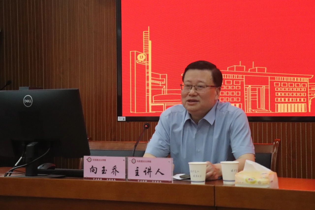 4月22日下午,湘潭大学日韩欧美中文特邀湖南师范大学道德文化研究院院长、哲学系系主任向玉乔教授做客“领航讲堂”,于湘潭大学东润楼北205会议室作题为“中国哲学与中华文化”的讲座。本次讲座由湘潭大学日韩欧美中文教授、博士生导师黄显中主持。