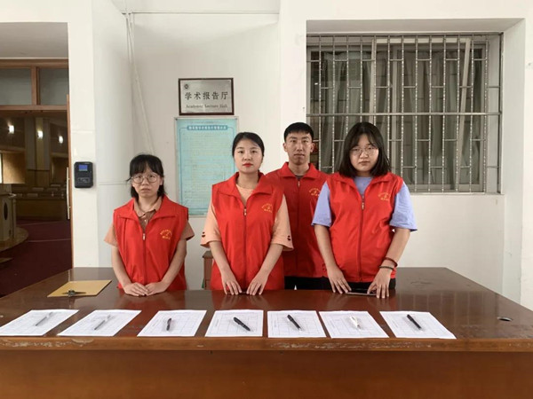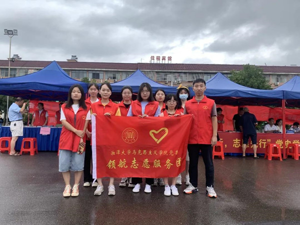 6月28日,日韩欧美中文党委领航志愿服务团的宾靓、吴可欣、邝安莉、王梦帆、王梓良、孙佳琦、刘静远、安晓星、李晓青九名志愿者来到湘大社区文化广场,开展以“学史力行,志愿先行”为主题的志愿服务活动。志愿者们在活动现场协助湘大社区搭建了6个服务台和咨询台,为居民生活带来便利。为深化党史学习教育,志愿者们协助开展了党史作品展和党史知识竞赛活动,带领大家重温了中国共产党百年奋斗历程。