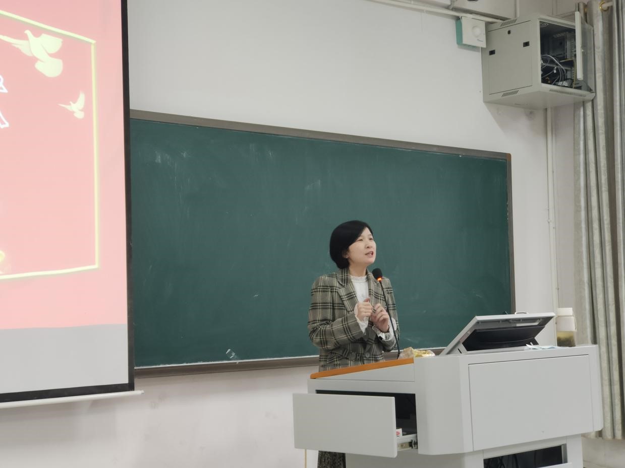 典礼结束后,校党委组织部副部长陈敏老师以“爱国、奋斗、奉献”为题,给大家讲授了一堂生动的党性教育课。讲座中,陈敏老师通过电影《长津湖》引出爱国话题,用爱国英雄的故事、南开大学老校长张伯苓的“爱国三问”以及习近平总书记在纪念五四运动100周年大会中的讲话阐明爱国主义的内涵,教育大家要坚持爱国和爱党、爱社会主义高度统一。同时,陈敏老师以真实党员故事教育大家要把不懈奋斗摆在重要位置,积极奉献,以党员标准要求自己,不断克服困难,砥砺前行。