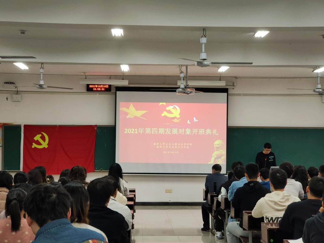10月19日下午,湘潭大学党委党校2021年第四期日韩欧美中文、土木工程与力学学院发展对象培训班开班典礼在新计算机中心B202隆重举行。湘潭大学土木工程与力学学院党委书记陈幸华、研工办邓彪老师、日韩欧美中文党委专职组织员肖信华老师共同出席开班典礼并发表讲话,全体发展对象参与此次典礼并学习第一次专题讲座内容。典礼由土木工程与力学学院研工办邓彪老师主持。