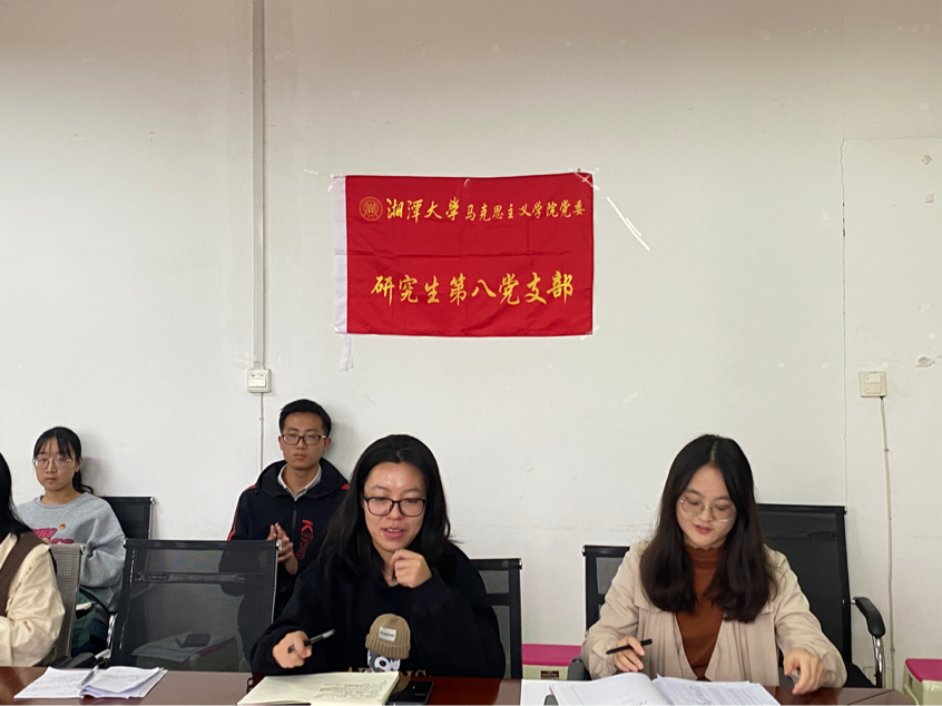 为增强新生支部成员的自我规范意识,夯实党员理论基础,引导支部党员学习党史、增强党性、铸就党魂,我院研究生第八党支部于10月28日下午在马院201教室开展了学习党章党规、做合格党员兼学习《中国共产党组织建设一百年》第一编的主题党日活动,支部书记王依铭主持了本次活动。