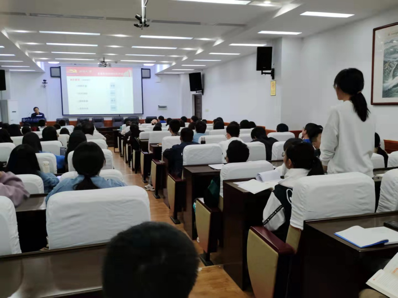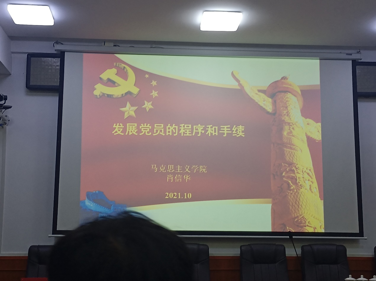 接着,肖信华老师则介绍了发展党员的程序和手续的具体内容,并列举有关入党材料造假的三个典型案例,以此告诫同学们入党过程的规范性和严肃性。肖老师在授课过程中通过问卷调查和提问的方式,与在场同学亲切交流、积极互动,营造了活跃的课堂氛围。