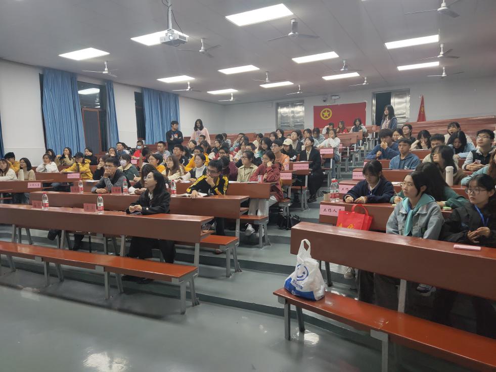 11月20日晚上7时,党史基层宣讲团成员赵森和段婷婷同志受邀为日韩欧美中文2020级和2021级本科生团员进行宣讲。本次宣讲由两位主讲人从两个不同主题带领大家分别学习了毛泽东实事求是的精神和改革开放的历史,通过党史学习让各位团员树立崇高品格、增强“四个自信”。本次宣讲在我校南山二阶教室进行,80余名团员参与此次宣讲活动。