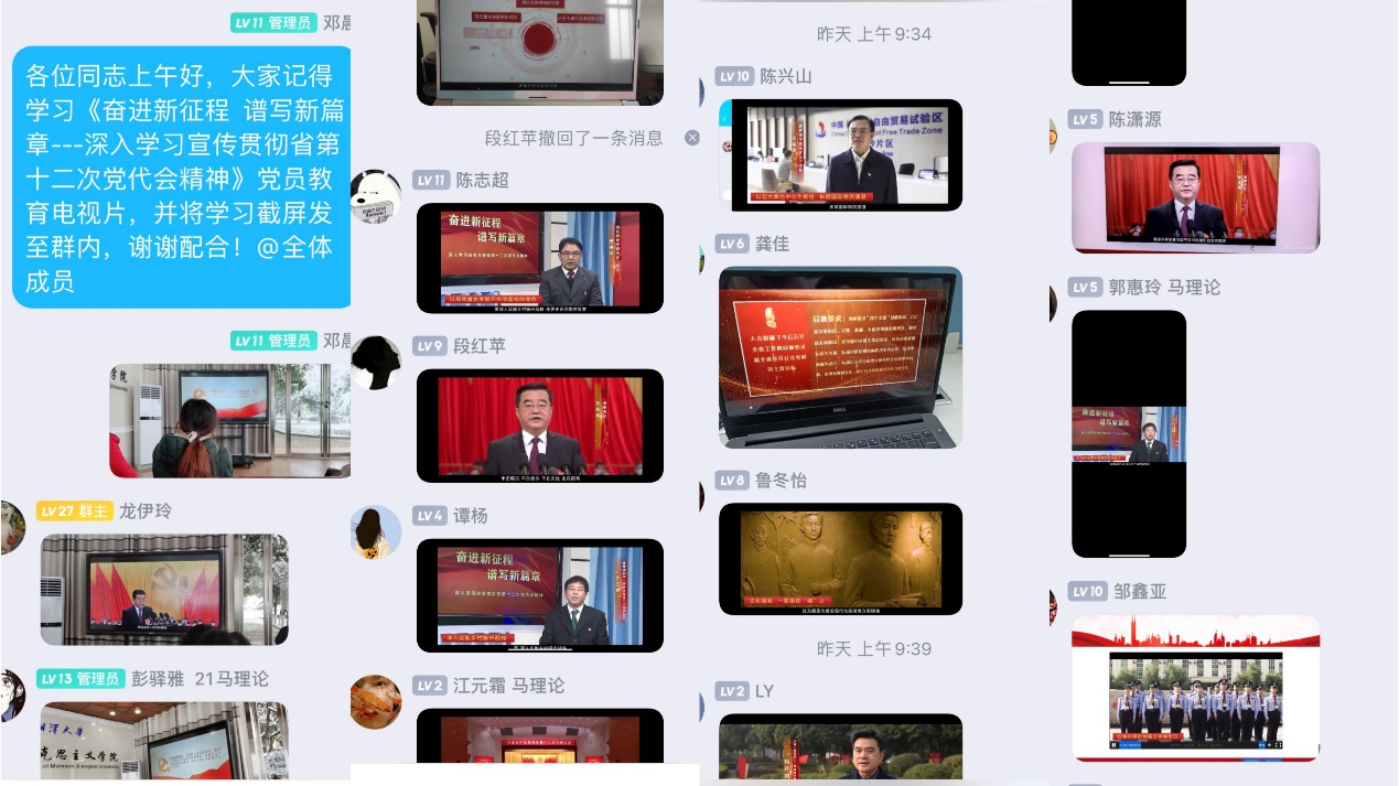 为深入学习贯彻省第十二次党代会精神,坚定政治理想,提高政治站位,强化主体责任,12月27日上午9:00,日韩欧美中文党委组织师生支委在马院一楼毛研中心集中收看省委组织部录制的《奋进新征程 谱写新篇章——深入学习宣传贯彻省第十二次党代会精神》党员教育片,与此同时,各支部党员在线上也进行了同步学习。