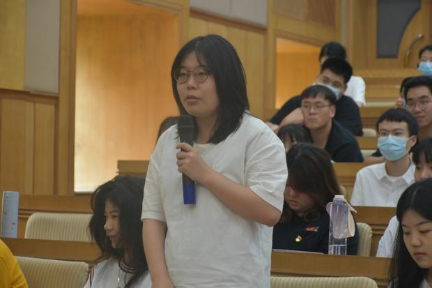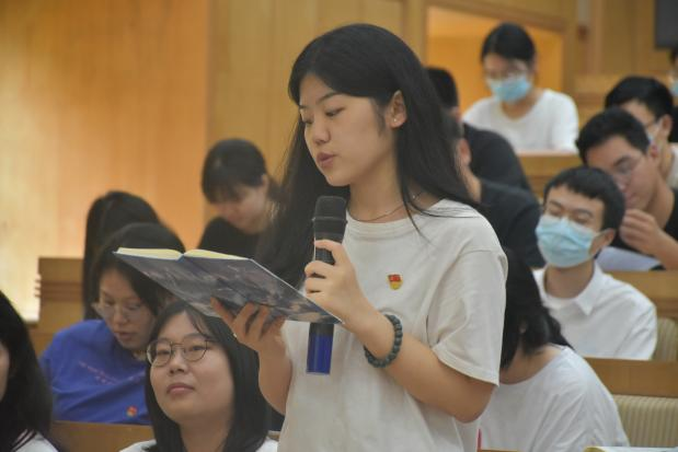 在交流互动环节,毕业班党员乔涵、刘斯文等同学畅谈了自己参加活动的感受和体会。乔涵表示,要将个人理想融进中国梦,努力成为成为一名为人民服务的优秀党员,成为一名适应党和人民需要的青年人才。刘斯文表示,要把“天下事”和“少年心”结合起开,胸怀祖国,心系天下,奋进在新时代的最前列。