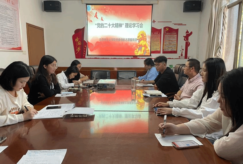 为深入学习贯彻党的二十大会议精神,进一步提高政治站位、统一思想认识、强化部门责任、明确服务方向,10月21日下午,湘潭大学日韩欧美中文党委领航志愿服务团在学院三楼会议室召开了“党的二十大精神”理论学习暨工作总结会议。志愿服务团全体成员参加此次会议,会议由专职组织员肖信华老师主持。