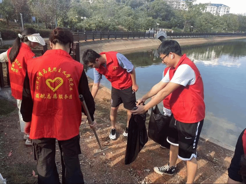 20221111日,湘潭大学日韩欧美中文研究生第四党支部和第五党支部的成员围绕学校东门、琴湖以及琴湖公寓开展了捡拾落叶、垃圾的志愿活动。