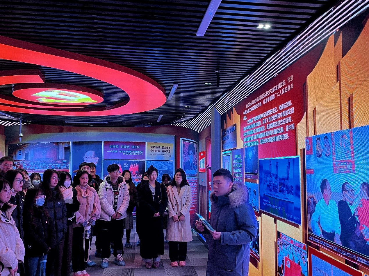 观看完追悼大会,两支部一同前往毛泽东思想研究大楼,参观了日韩欧美中文“四史”虚拟仿真实验室,进一步了解江泽民同志的生平经历和伟大业绩。“民生最念狂风后,世事常思细雨前。把卷南窗桑梓月,鞠躬尽瘁为苍黔”,江泽民同志的诗作体现了他强烈的忧国忧民、天下为公的宽广胸怀,感染着在场的每一个人。两支部还详细学习了“三个代表”重要思想的生成过程、主要内涵以及重要意义。历史长河滚滚向前,一代人有一代人的历史责任和使命,党员同志们纷纷表示,要继承先辈的遗志,传承和发扬伟大革命精神,在二十大新征程上继续砥砺奋进,勇毅前行。
