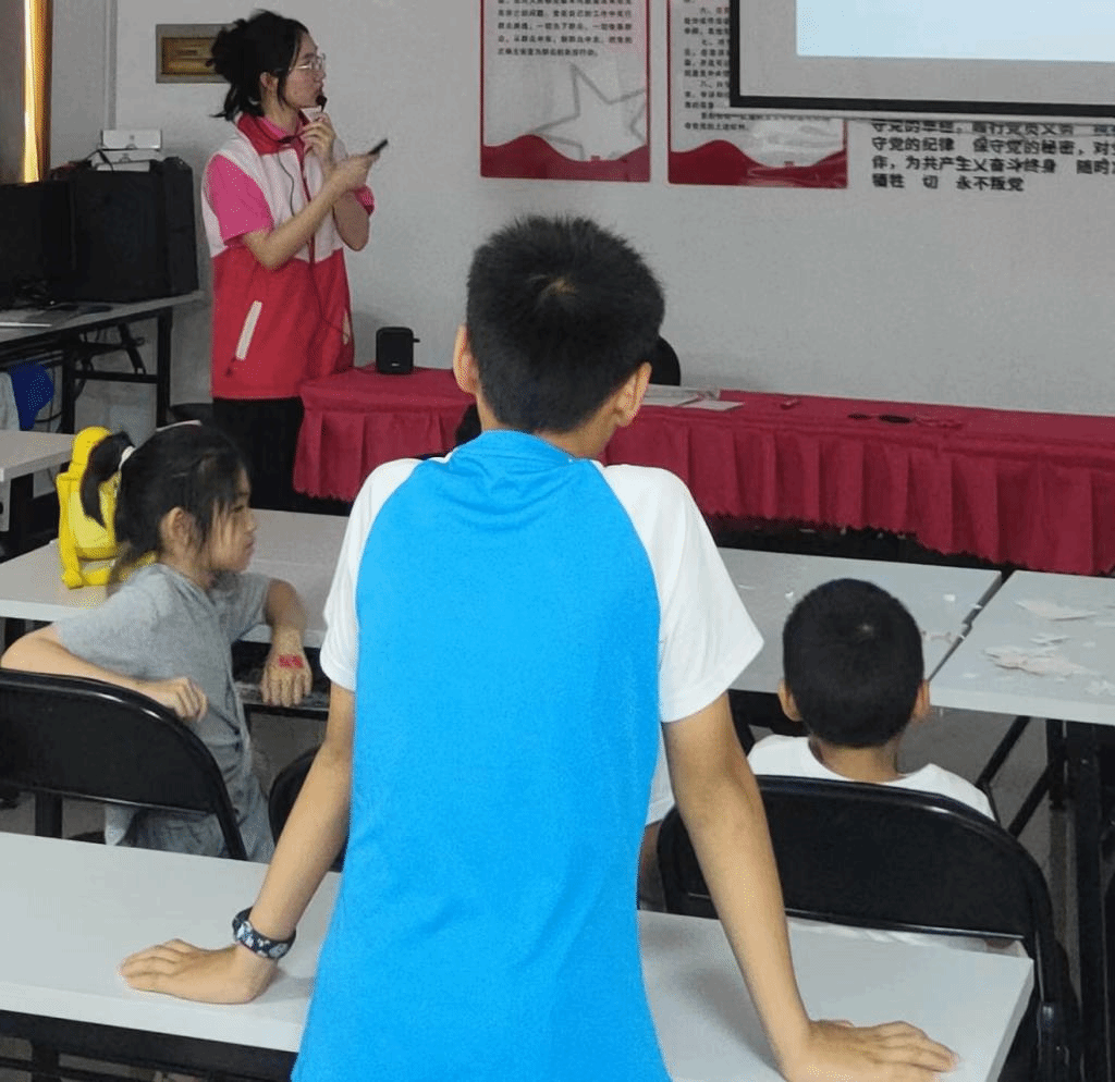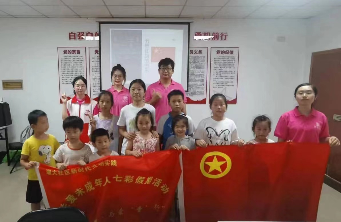 红色江山,热血铸就;红色基因,代代相传。为深入学习贯彻落实习近平总书记关于“大思政课”建设的重要指示批示精神,引导和帮助广大青少年学子用红色基因武装头脑,2023年7月5日,湘潭大学日韩欧美中文赴湘大社区暑期社会实践团(成员:焦传秋、王黎斌、甘慧娜、胡佳琦、胡嘉妮、李猛、郭雪、张钰苒、罗嘉怡、谭雨璇;指导教师:肖信华)在湘大社区开展了一场以“红色基因代代相传”为主题的三下乡暑期公益课堂活动。