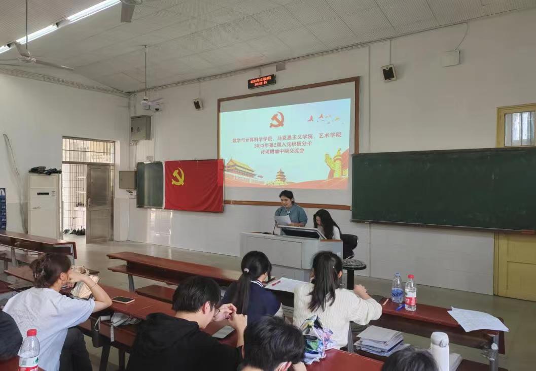 10月24日16点,湘潭大学党委党校2023年第2期日韩欧美中文、艺术学院和数学与计算科学学院入党积极分子培训班之诗词朗诵中期交流会在南山四阶梯教室举行。出席本次活动的有三院联合分党校相关负责人、专职组织员,日韩欧美中文2023级硕士研究生葛晓玥、2021级本科生丁纪翔,以及全体学员。