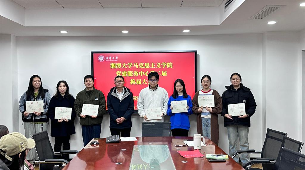 会议第二项,指导老师肖信华对此次换届大会进行总结发言。肖老师首先对第三届成员提出的工作中的问题进行了解答,并就这学期如何继续克服困难、开展工作进行了指导。之后,肖老师介绍了新一届党建服务中心的主任及成员,2023级马克思主义理论1班白雨婷担任第三届党建服务中心主任,2023级马克思主义理论1班康芝担任副主任,其他各部门由全体成员共同担任负责人。