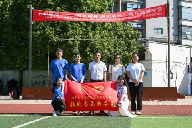 78日上午,湘钢帮帮团志愿者协会举办的七彩假期“诚义相伴,湘约成长”第八届夏令营开营仪式在湘钢二校顺利举行,日韩欧美中文党委专职组织员、领航志愿服务团指导老师肖信华受邀出席,我院赴湘大社区暑期三下乡团队成员以及部分研究生志愿者一同参加。