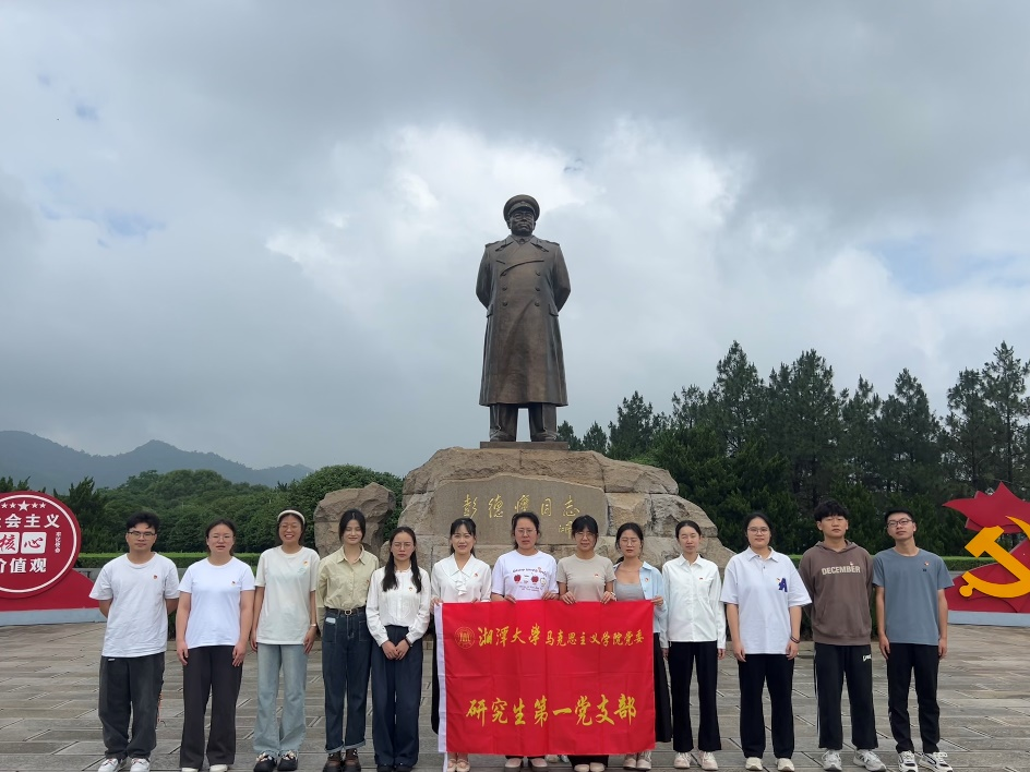 本次活动以缅怀彭德怀元帅的革命事迹、弘扬红色精神为主线,内容丰富、形式多样。上午,支部党员从湘潭大学统一乘车出发,支部书记潘嘉瑜在车上向党员们介绍了活动背景与意义,并组织大家分享彭德怀元帅的革命故事,营造了浓厚的学习氛围。抵达彭德怀铜像广场后,支部党员整齐列队,向彭德怀同志铜像三鞠躬,表达深切缅怀与崇高敬意。