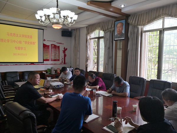5月31上午党委理论学习中心组召开党史学习教育读书班第三次专题学习会。会议由党委常务副书记张佑祥主持,院长颜佳华及其他院党委理论学习中心组其他成员参加学习。