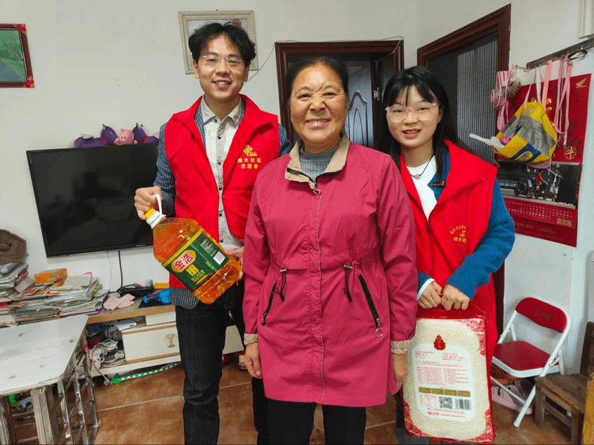 “奶奶,这是咱们给您送的慰问物品,祝您节日快乐、健康长寿”,参加活动的志愿者们带着慰问物品来到社区老人家中,为他们送上祝福,传递温暖。志愿者们一进入社区,就热情地向老人们问好,陪他们聊天,面对面倾听他们的心声和意见建议。在社区工作人员的带领下,志愿者们来到老人家中与老人促膝长谈,详细询问他们的身体及生活状况,为他们送上节日的问候,米、油等生活物资,让社区老人们倍感温暖,他们表示:“社区志愿者们为他们送祝福、送温暖,他们感受到了满满的幸福感。”