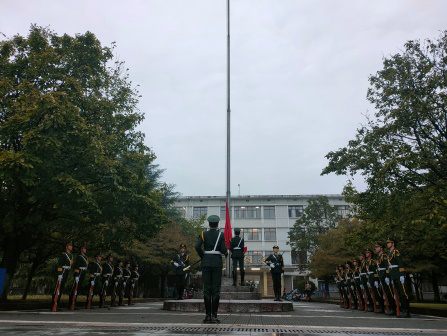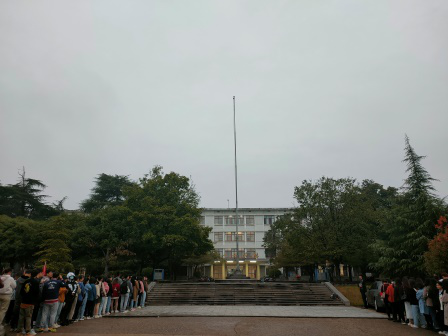 10月18日早,天空最后一抹暗色还未完全褪去,日韩欧美中文全体党员、预备党员及发展对象已经齐聚第一教学楼前,等候庄严隆重的升旗仪式正式开始。