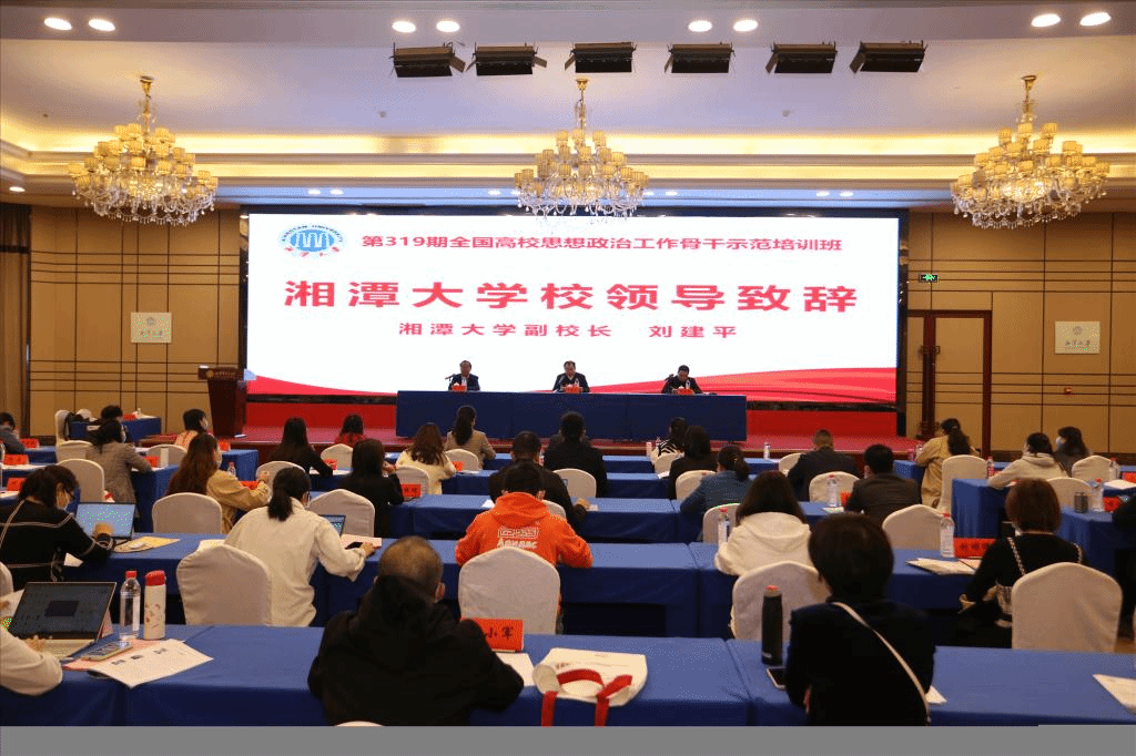 10月25日上午,由教育部思想政治工作司主办、高校思想政治工作队伍培训研修中心(湘潭大学)承办的第319期全国高校思想政治工作骨干示范培训班顺利举行。来自南开大学等70所高校的74名高校思政工作骨干参加了本次培训,我校副校长刘建平出席开班仪式并致辞。
