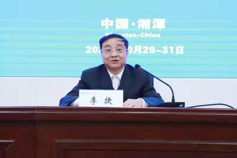 《求是》杂志社原社长、湘潭大学特聘教授李捷作了题为《开创与奠基——毛泽东对中华民族伟大复兴的独特历史贡献》的主旨发言。李捷指出,毛泽东创建了一个担当民族复兴大任的党,为实现中华民族伟大复兴缔造了中流砥柱和坚强领导核心;开辟了一条适合中国国情的正确革命道路,为实现中华民族伟大复兴创造了根本社会条件;创建了新型人民军队,把它置于党的绝对领导之下,形成一整套人民军队的光荣传统和优良作风,形成一整套依靠人民群众克敌制胜的战略战术;创建了新中国,使新中国稳固地站在社会主义经济基础和制度基石之上,为实现中华民族伟大复兴奠定了根本政治前提和制度基础;领导了大规模社会主义工业化建设,实现了工业体系和国民经济体系从无到有的根本转变,为经济文化落后的东方大国实现社会主义现代化的积累了宝贵经验;在领导中国革命和建设中铸就了最广泛的爱国民主统一战线,调动一切可以调动的积极因素,为社会主义建设凝聚力量;铸就了中华各族人民的大团结,建立了各民族平等互助发展进步融合的新型关系;铸就了社会主义国家治理的制度根基和实践基础;形成了独立自主的和平外交方针;开辟了马克思主义中国化正确道路,创立了毛泽东思想,为全党全国人民提供了实现中华民族伟大复兴的科学指导思想。