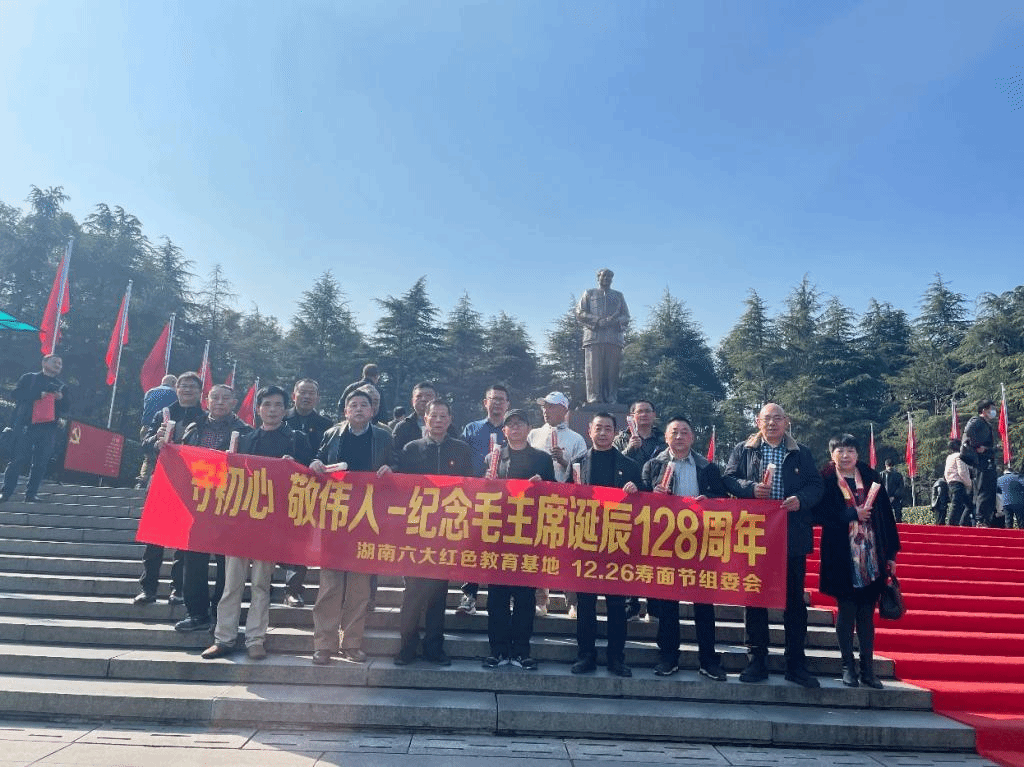 为贯彻落实习近平总书记关于“把红色资源利用好,把红色传统发扬好,把红色基因传承好”的指示精神,加强湖南红色教育基地的联动协作,促进湖南红色教育事业,实现湖南红色基地的融合发展,2021年12月21日上午,湖南六大红色教育基地领导及代表共聚韶山毛泽东同志铜像广场,共同开启纪念毛泽东同志诞辰128周年系列活动序幕。我院李雅兴教授,专职组织员肖信华,田洪懿、陈源两名研究生代表参加了此次启动仪式。